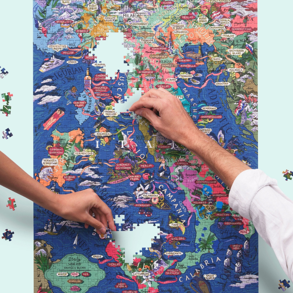 A kirakós mellé járó dobozba a legjobb sommelier-k válogatták a leghíresebb olasz szőlőfajták profiljait, ételpárosítási tippekkel kiegészítve, hogy átadhasd magad az igazi Dolce Vita életérzésnek. Készülj fel az olasz borkultúra mélységeinek felfedezésére, és egy olyan megkapó élményben lesz részed, mint még soha! És hogy az élmény még autentikusabb legyen kirakózás közben hallgasd a Water&Wines csapatának ehhez a Kalandhoz összeállított zenei válogatását (a letöltéshez kattints ide)!
